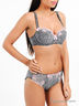 Очаровательный комплект нижнего белья из тонкой сетчатой ткани с подкладкой. Состоит из бюстгальтера и трусиков слипов. Бюстгальтер классической формы на косточках. Чашки на тонком поролоне с хлопковой подкладкой. Несъемные бретели регулируются по длине, застежка на два крючка в три позиции. Трусы слипы. Пояс и проймы на резинке, ластовица с хлопковой подкладкой. Комплект декорирован оригинальным рисунком и контрастной вышивкой.