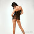 Нейлоновая сорочка на регулируемых бретелях с шёлковистой вышивкой. Лиф украшен декоративным атласным бантом. Нейлоновые трусики-стринги с вышивкой в комплекте.