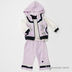 Выполненый из мягкого не эластичного трикотажа средней плотности, стильный комплект - классический комплект с круглым вырезом горрловины, жилет с триоктажной бейкой, застежка на молнии, отделка рюшей, брючки на резинке, так же декорированы рюшей.