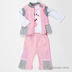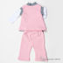 Выполненый из мягкого не эластичного трикотажа средней плотности, стильный комплект - классический комплект с круглым вырезом горрловины, жилет с триоктажной бейкой, застежка на молнии, отделка рюшей, брючки на резинке, так же декорированы рюшей.