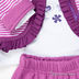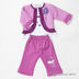 Выполненый из мягкого не эластичного трикотажа средней плотности, стильный комплект толстовка с круглым вырезом горловины и длинным рукавом, стильная вышивка по хлопку и отделка рюшей, болеро с длинным завернутым рукавом так же отделана рюшей, удобные брючки на широкой резинке.