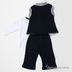 Выполненый из мягкого не эластичного трикотажа средней плотности, стильный комплект - классический комплект с круглым вырезом горрловины, жилет с триоктажной бейкой, застежка на молнии, отделка рюшей, брючки на резинке, так же декорированы рюшей.