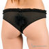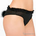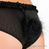 Эротический комплект из трусиков-слип и перчаток выполнен из тонкой эластичной сеточки с добавлением серебристой нити. Пояс трусиков отделан присборенной тесьмой. Сзади – симпатичный бантик с атласными лентами и помпонами из перьев. Перчатки с открытыми пальцами декорированы ажурной тесьмой-сеточкой по нижнему и верхнему срезу.