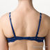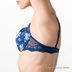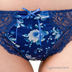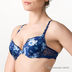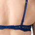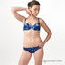 Стильный цветной комплект с бюстгальтером push-up и трусиками-стринг. Бюстгальтер имеет съемные бретели и ажурную окантовку на чашечках. Трусики с ажуром и синим бантиком спереди.