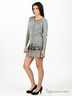 Детали: отрезной трикотажный лиф у платья; низ платья декорирован оригинальным принтом со стразами; кардиган застегивается на пуговицы; манжеты, нижняя резинка и пояс в рубчик; декорирован оригинальной нашивкой