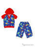Летний комплект для мальчика. Состоит из футболки с капюшоном и капри. Горловина футболки украшена блочками и шнурком. Бермуды свободного покроя с накладными однотонными карманами. Практичная яркая расцветка. Натуральная ткань (100%хлопок)