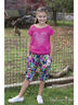 Прекрасный комплект, состоящий из футболки и бридж. Футболка с округлым вырезом горловины и короткими рукавами. Изделие декорировано принтом. Бриджи на эластичном поясе яркой расцветки. Пояс дополнен завязками. По бокам - втачные карманы. Отличный вариант для детского гардероба.