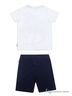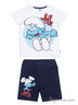 Комфортная пижама для сна с ярким принтом любимого героя - смурфика растяпы. Пижама из эластичного трикотажа, состоит из футболки и шорт. Горловина футболки обработана кантом из мягкой трикотажной резинки. Внутренняя часть горловины обработана хлопковым кантом контрастного цвета. Пояс шорт - внутренняя широкая резинка.