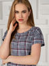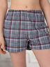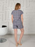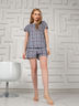 Уютный домашний костюм с шортами и футболкой полуприлегающего силуэта, с коротким рукавом и нагрудным кармашком. Запринтован принтом горох и клетка.