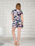 Уютный домашний костюм с шортами и футболкой полуприлегающего силуэта, с коротким рукавом и нагрудным кармашком. Запринтован принтом горох и клетка.