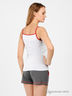 Стильный комплект для дома состоит из топа и шорт. Топ из тонкого эластичного трикотажа. Окантовка округлого выреза и пройм контрастного цвета переходит в тонкие бретели. На полочке оригинальный принт. Шорты из плотного эластичного трикотажа. Отрезной пояс на резинке дополнен кулиской, два кармана.