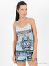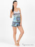 Комплект домашней одежды состоит из двух предметов, топа и шорт. Топ прямого силуэта выполнен из трикотажного материала. Изделие с округлым вырезом горловины, тонкие бретели. Полочка изделия присобрана на резинку. Шорты свободного силуэта с эластичной резинкой в поясе. Качественные вещи из натурального, приятного на ощупь материала.
