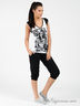 Комплект домашней одежды состоит из двух предметов, майки и штанов. Майка прямого кроя, без рукавов, V-образный вырез горловины, полочка изделия украшена принтом. Укороченные штаны свободного кроя с широкой эластичной резинкой в поясе. Качественные вещи из натурального, приятного на ощупь материала.