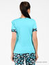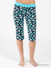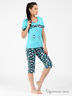 Комплект домашней одежды состоит из двух предметов, футболки и штанов. Футболка прямого кроя, короткие рукава, округлый вырез горловины, полочка изделия украшена принтом и прострочкой. Укороченные штаны прямого кроя с широкой эластичной резинкой в поясе. Качественные вещи из натурального, приятного на ощупь материала.