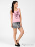 Комплект домашней одежды состоит из двух предметов, майки и юбки. Майка прямого кроя, без рукавов, округлый вырез горловины, полочка изделия украшена принтом. Юбка прямого кроя с широкой эластичной резинкой в поясе, изделие украшено принтом. Качественные вещи из натурального, приятного на ощупь материала.