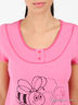 Комплект домашней одежды состоит из двух предметов, футболки и штанов. Футболка прямого кроя, короткие рукава, округлый вырез горловины, полочка изделия украшена принтом. Застежка на кнопки. Укороченные штаны прямого кроя с широкой эластичной резинкой в поясе, по бокам расположены открытые карманы. Качественные вещи из натурального, приятного на ощупь материала.