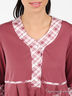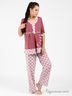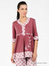 Комплект домашней одежды состоит из двух предметов, туники и штанов. Туника свободного кроя, застегивается на пуговицы, рукава изделия укорочены, спереди туника украшена фигурной прострочкой. Штаны свободного кроя с широкой эластичной резинкой в поясе, по бокам расположены открытые карманы. Качественные вещи из натурального, приятного на ощупь материала.