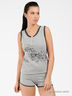 Комплект домашней одежды состоит из двух предметов, майки и коротких шорт. Майка прямого кроя, без рукавов, полочка изделия украшена принтом, застежка на кнопки. Шорты прямого кроя с эластичной резинкой в поясе. Качественные вещи из натурального, приятного на ощупь материала.