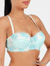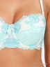 Оригинальный бюстгальтер Push up на косточках с поролоновыми чашками. Выполнен из тонкой шелковистой ткани, внутренняя часть чашек выполнена из мягкого хлопкового материала. Съемные эластичные бретели регулируются по длине. Нижняя часть чашек дополнена съемным уплотнителем. Застегивается на два крючка в три позиции. Декорирован кружевными вставками. Трусы - слипы средней посадки декорированы гипюровым кружевом.