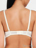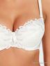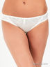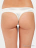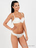 Оригинальный бюстгальтер Push up на косточках с поролоновыми чашками. Выполнен из тонкой шелковистой ткани, внутренняя часть чашек выполнена из мягкого хлопкового материала. Съемные эластичные бретели регулируются по длине. Нижняя часть чашек дополнена съемным уплотнителем. Застегивается на два крючка в три позиции. Декорирован кружевными вставками. Трусы - стринги средней посадки декорированы гипюровым кружевом.