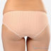 Комплект состоит из бюстгальтера Push up и трусиков слипов. Комплект выполнен из эластичной шелковистой ткани с кружевными вставками. Бюстгальтер на косточках с поролоновыми чашками. Несъемные эластичные бретели регулируются по длине. Нижняя часть чашек дополнена съемным уплотнителем. Застегивается на два крючка в три позиции. Пройма трусиков дополнена резинками, ластовица на хлопковой подкладке. Комплект декорирован оригинальным принтом - полоска.