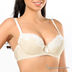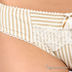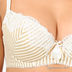 Комплект состоит из бюстгальтера Push up и трусиков слипов. Комплект выполнен из эластичной мягкой ткани с кружевными вставками. Бюстгальтер на косточках с поролоновыми чашками. Несъемные эластичные бретели регулируются по длине. Нижняя часть чашек дополнена съемным уплотнителем. Застегивается на два крючка в три позиции. Пройма трусиков дополнена резинками, ластовица на хлопковой подкладке. Комплект декорирован принтом - полоска и оригинальными бантиками.