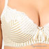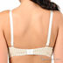 Комплект состоит из бюстгальтера Push up и трусиков стрингов. Комплект выполнен из эластичной мягкой ткани с кружевными вставками. Бюстгальтер на косточках с поролоновыми чашками. Несъемные эластичные бретели регулируются по длине. Нижняя часть чашек дополнена съемным уплотнителем. Застегивается на два крючка в три позиции. Пройма трусиков дополнена резинками, ластовица на хлопковой подкладке. Комплект декорирован принтом - полоска и оригинальными бантиками.