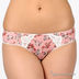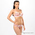 Комплект состоит из бюстгальтера Push up и трусиков стрингов. Комплект выполнен из эластичной шелковистой ткани с кружевными вставками. Бюстгальтер на косточках с поролоновыми чашками. Несъемные эластичные бретели регулируются по длине. Нижняя часть чашек дополнена съемным уплотнителем. Застегивается на два крючка в три позиции. Пройма трусиков дополнена резинками, ластовица на хлопковой подкладке. Комплект декорирован оригинальным принтом.