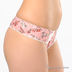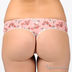 Комплект состоит из бюстгальтера Push up и трусиков стрингов. Комплект выполнен из эластичной шелковистой ткани с кружевными вставками. Бюстгальтер на косточках с поролоновыми чашками. Несъемные эластичные бретели регулируются по длине. Нижняя часть чашек дополнена съемным уплотнителем. Застегивается на два крючка в три позиции. Пройма трусиков дополнена резинками, ластовица на хлопковой подкладке. Комплект декорирован оригинальным принтом.
