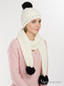 Комфортная шапочка двойной вязки, украшенная стразами и мягкий шарф с задорными помпонами выполнены в модном черно-белом исполнении, обхват головы 56-58 см.