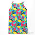 Сарафан свободного кроя из неэластичного слегка прозрачного материала. В края выреза вставлена регулирующие атласные ленточки, которые также выполняют роль лямок, завязывающихся на плече.
