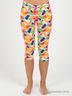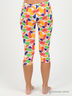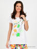 Детали: футболка - широкий круглый вырез; короткий цельнокроеный рукав; на полочке аппликация; по бокам разрезы; леггинсы - пояс на резинке; оригинальный разноцветный принт