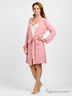 Халат выполнен из мягкого вискозного трикотажа средней плотности. Длинный рукав, два передних кармана. По боковым швам пришиты шлевки, пояс в комплекте.