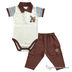 Удобный и стильный комплект для мальчика, в который входят: боди в стиле "поло" и штанишки. Боди украшен аппликацией "Лось" и имеет кнопочную застёжку вверху - у ворота, и внизу- между ножек. Мягкий и прочный трикотаж не линяет при стирке, не скатывается. Комплект на плечиках.