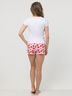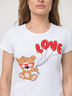 Комплект из футболки с коротким рукавом и шорт. Футболка белого цвета, классического кроя, слегка приталенного силуэта. На передней детали футболки яркий, веселый принт медвежонка с шарами. Шорты свободного кроя и классической длины, с удобной посадкой, по талии широкая резинка.