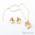 Колье на тонкой цепочке с удлинителем, кулон выполнен из золотистого металла, украшен стразами и жемчужинами. Серьги с замком швензер выполнены в том же стиле, что и кулон.