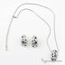 Колье на тонкой цепочке-пружинке с удлинителем, оригинальный кулон украшен стразами. Серьги на замочке швензер выполнены в стиле кулона.