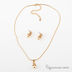 Колье на тонкой цепочке оригинального плетения с удлинителем, нежный кулон украшен стразами и жемчужинкой. Серьги-гвоздики выполнены в том же стиле, что и кулон.