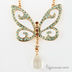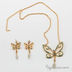 Колье на тонкой цепочке с удлинителем, крупный кулон в виде бабочки украшен стразами и завершается небольшой прозрачной "каплей". Серьги-гвоздики выполнены в стиле кулона.