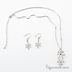 Колье на тонкой цепочке с удлинителем, кулон выполнен из серебристого металла, украшен стразами. Серьги на французском замке выполнены в том же стиле, что и кулон.