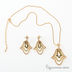 Колье на тонкой цепочке с удлинителем, кулон выполнен из золотистого металла в форме цветов-колокольчиков, украшен стразами. Серьги-гвоздики выполнены в том же стиле, что и кулон.