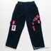 Вельветовые брюки прямого силуэта. В пояс вставлена резинка, пришиты шлевки. Два передних кармана, два боковых кармана на брючинах. Изделие украшено аппликациями и нашивками.