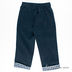 Брюки прямого силуэта. В пояс вставлена резинка, пришиты шлевки. Два передних кармана. Декоративные отвороты, аппликации.