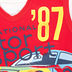 Кофта прямого силуэта с эффектом двойки. Длинный рукав, оригинальный вырез. Полочка декорирована аппликациями.