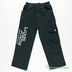 Брюки прямого силуэта. В пояс вставлена резинка, пришиты шлевки. Застежка на молнию. Два передних кармана, один боковой карман на брючине. Изделие украшено аппликациями.