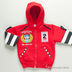 Толстовка прямого силуэта с капюшоном застегивается на молнию. Утепление начесом. Эффект двойки. Два передних кармана. Низ изделия - трикотажная резинка. Изделие украшено аппликациями и нашивками.