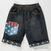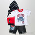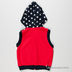 Детали: футболка декорирована набивным рисунком, жилет с капюшоном на молнии, шорты на резинке с тремя карманами