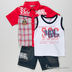 Детали: застежка на пуговицы, отложной воротник, короткий рукав, полочка декорирована аппликацией и набивным рисунком, шорты на плотной резинке, три кармана