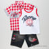 Детали: майка декорирована набивным рисунком, рубашка с отложным воротником застегивается на пуговицы, короткий рукав, шорты на плотной резинке, четыре кармана