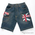 Шорты прямого кроя. В пояс вставлена резинка, пришиты шлевки. Застежка на молнию. Два передних кармана, два кармана на брючинах. Декоративные аппликации, эффект потертости.